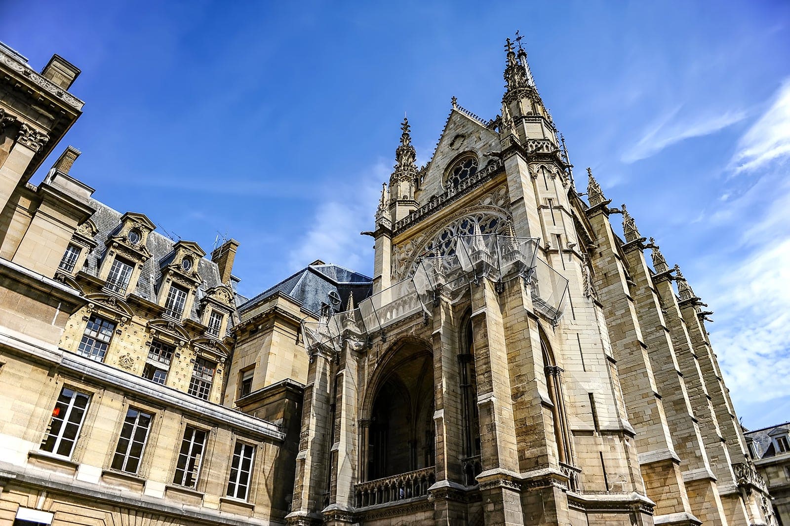 Sainte-Chapelle es una magnífica capilla real situada en la isla de la Cité, en medio del río Sena. Se encuentra en el interior del medieval Palacio de la Cité, residencia de los reyes de Francia hasta el siglo XIV. El edificio, cuya construcción llevó solo siete años, fue consagrado en 1248 y se considera una joya del gótico.