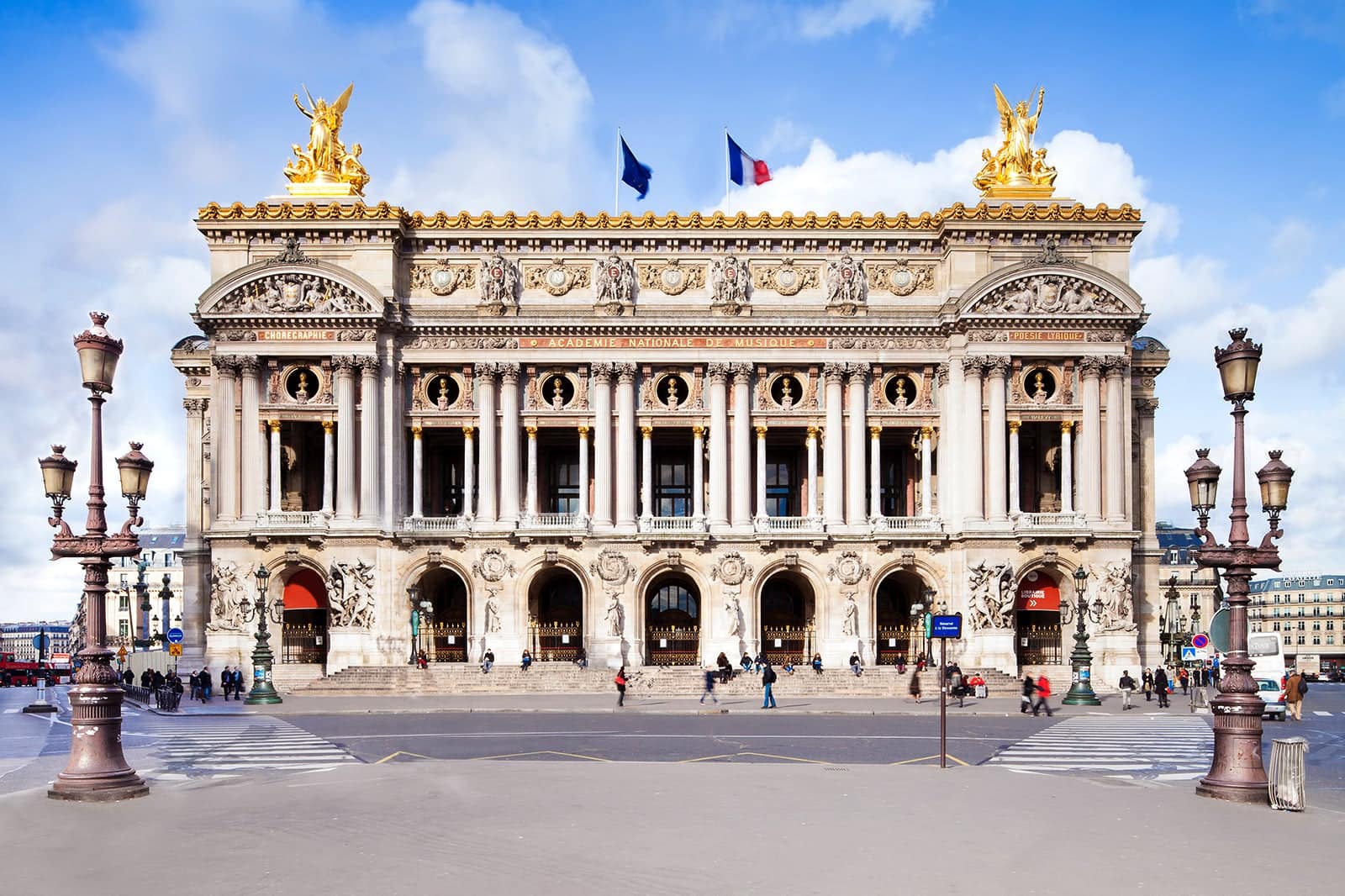 Su majestuoso exterior destaca como el punto de interés más visible del famoso distrito comercial de Opéra-Haussmann. En el interior, una gran escalinata recibe a los visitantes antes de acceder al lujoso auditorio, con altos techos decorados y mobiliario borgoña. El edificio, también conocido como Ópera Garnier u Ópera de París, es actualmente la sede del Ballet de París, que actúa regularmente en este lujoso espacio.